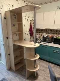 Барная стойка "Омега" — стильное и практичное решение для кухни, гостиной или квартиры-студии. Она отлично дополнит кухонный гарнитур и поможет зонировать пространство, придав интерьеру современный и функциональный облик.