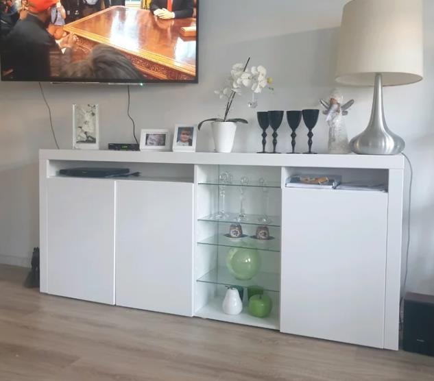 Открытая ниша со стеклянными полками: Идеальное место для демонстрации ваших любимых предметов декора, фотоальбомов или коллекционных фигурок. Стеклянные полки добавляют комоду легкости и воздушности. Вы сможете наслаждаться красотой своих вещей, не открывая дверцы.