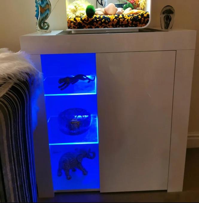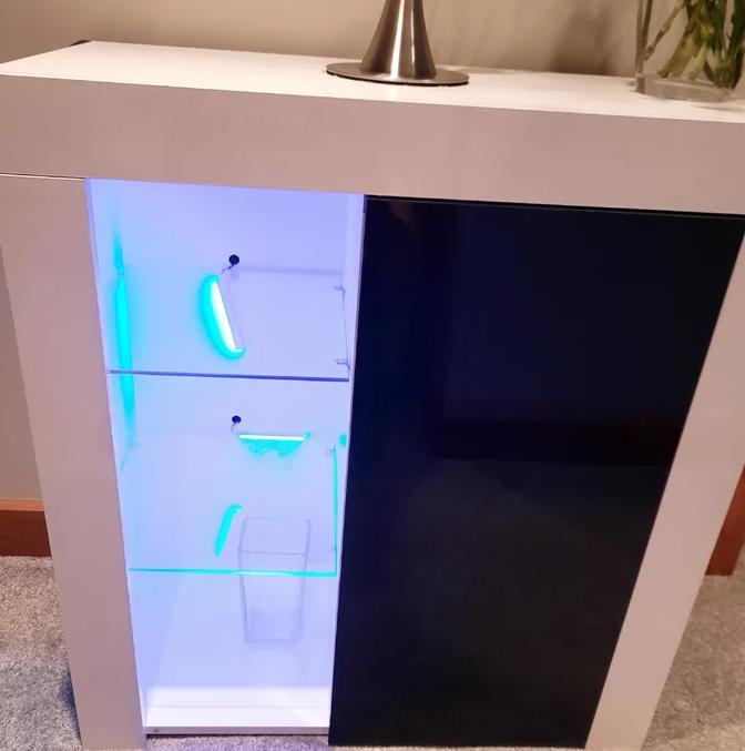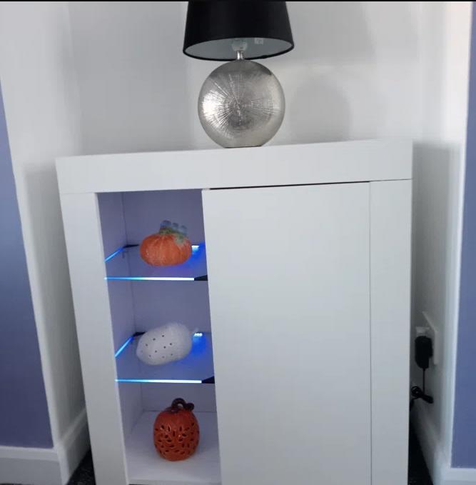 Слева от распашной дверцы расположена открытая ниша со стеклянными полками. Используйте её для демонстрации ваших любимых фотографий, декоративных элементов или коллекции эксклюзивного фарфора. Стеклянные полки добавляют комоду лёгкости и воздушности, превращая его в элегантный элемент декора.