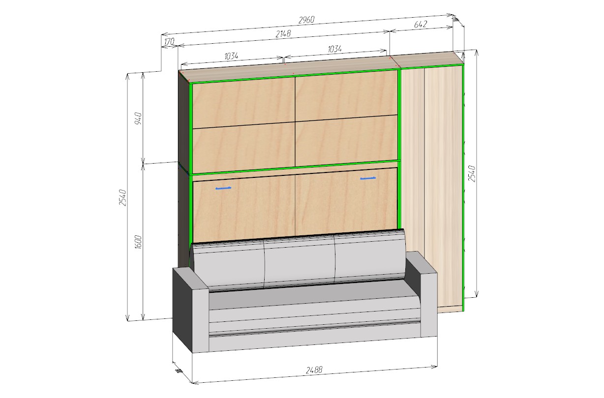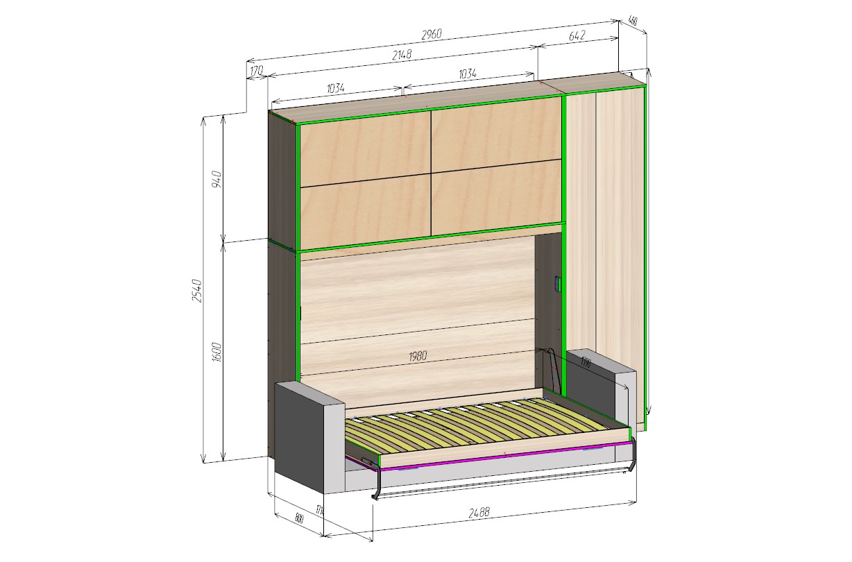 Кровать-трансформер с диваном Гирро — стильное и функциональное решение для узких пространств. Благодаря горизонтальному механизму раскладывания модель сочетает компактность, комфорт и современный дизайн.