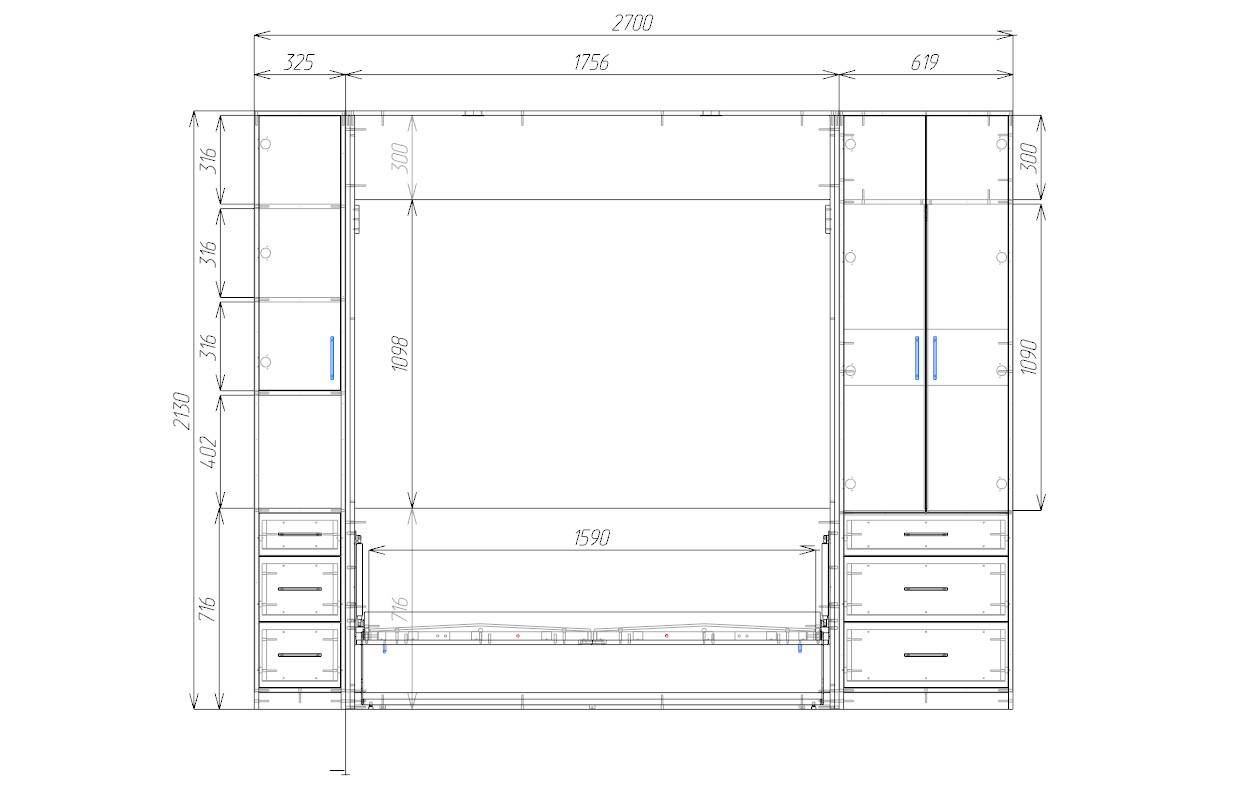 ⚠ Мы не рекомендуем использовать пружинные матрасы для шкафов-кроватей. Оптимальный выбор — лёгкие беспружинные матрасы из современных материалов, которые не деформируются при хранении в вертикальном положении и сохраняют форму.