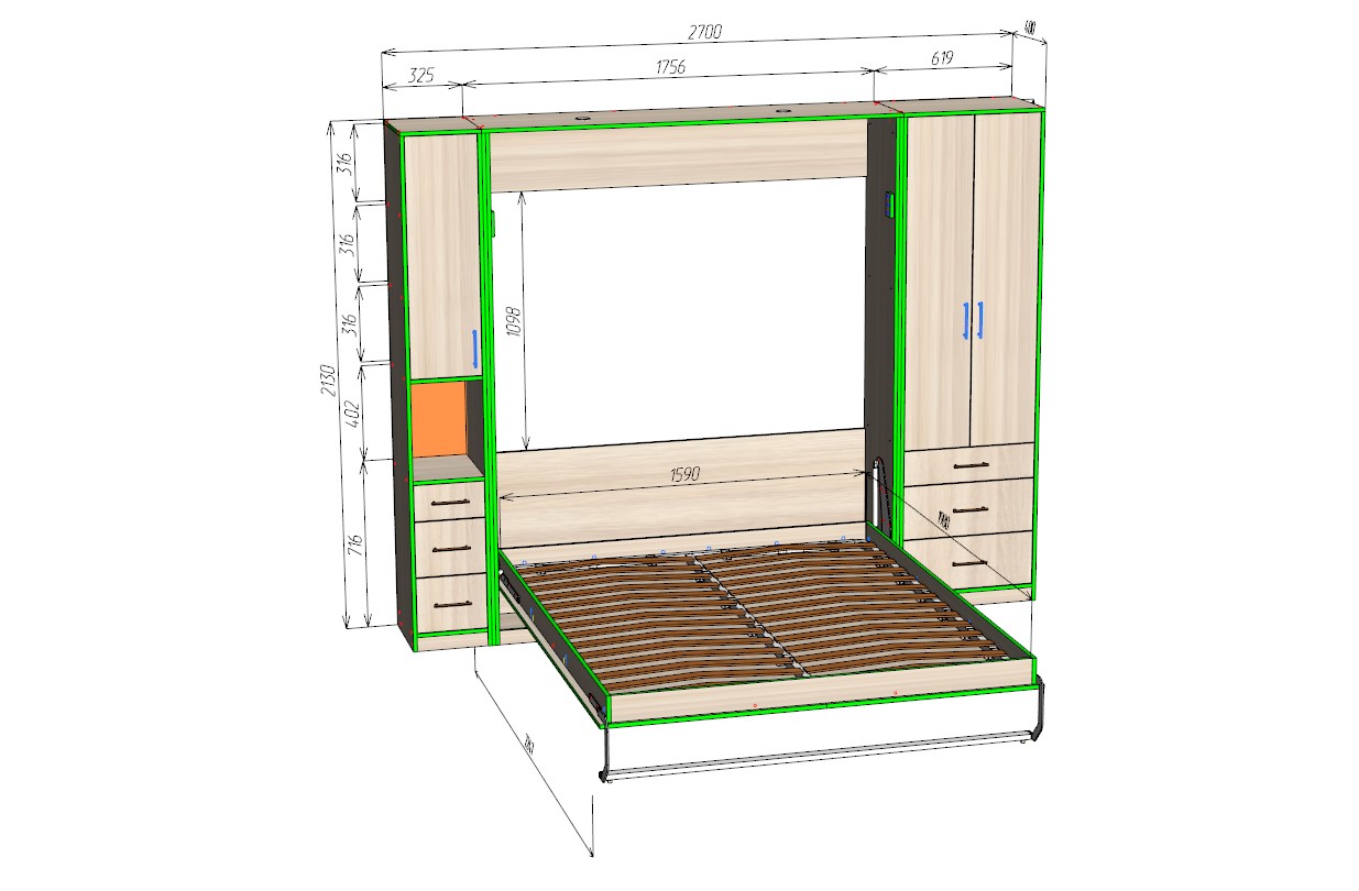 • Откидная кровать с вертикальным механизмом надежна и проста в эксплуатации.