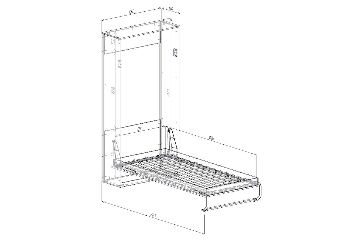 Надёжный вертикальный механизм обеспечивает простое и безопасное использование, а компактные размеры позволяют использовать шкаф-кровать даже в самых небольших комнатах — будь то гостиная, кабинет или студия.