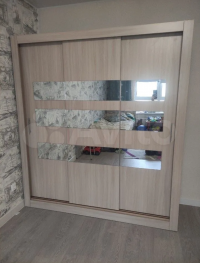 Двухдверный дизайн с зеркалами: Две раздвижных дверцы с элегантными зеркалами не только обеспечивают удобство использования, но и визуально расширяют пространство, добавляя света и воздуха в комнату. Зеркала – это не просто функциональный элемент, а стильный акцент, который преображает дизайн вашего помещения. Размер зеркал, разумеется, будет соответствовать габаритам дверей шкафа.