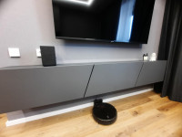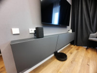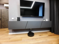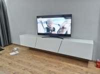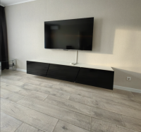 Корпус тумбы выполнен из ЛДСП толщиной 16 мм, фасады изготовлены из МДФ. Надежные материалы обеспечивают конструкции устойчивость, долговечность и привлекательный внешний вид. Откидные дверцы оснащены газовыми амортизаторами, благодаря чему открываются плавно и бесшумно. Возможность изготовления в нужных размерах позволяет подобрать оптимальный вариант под конкретное помещение и параметры техники.