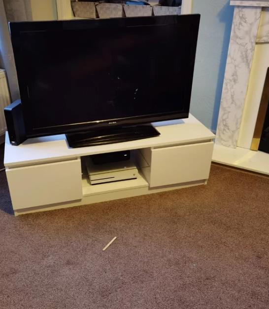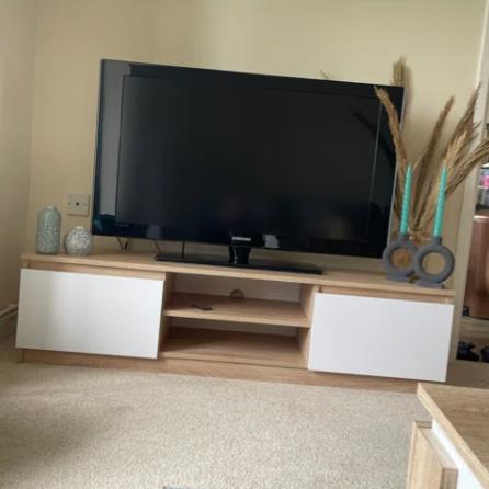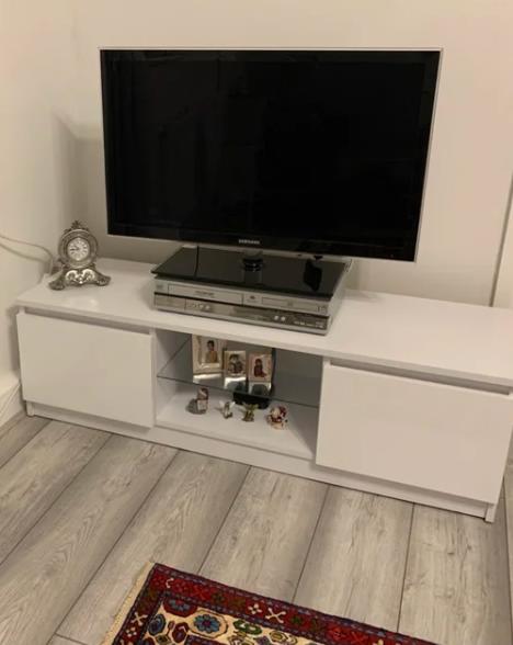 Элегантный дизайн: Две симметричные откидные дверцы по краям надежно скрывают ваши провода, диски и прочие мелочи, сохраняя порядок и чистоту. Центральная открытая ниша с удобной полкой идеально подходит для размещения медиа-плеера, игровой консоли или декоративных элементов. Всё продумано до мелочей!