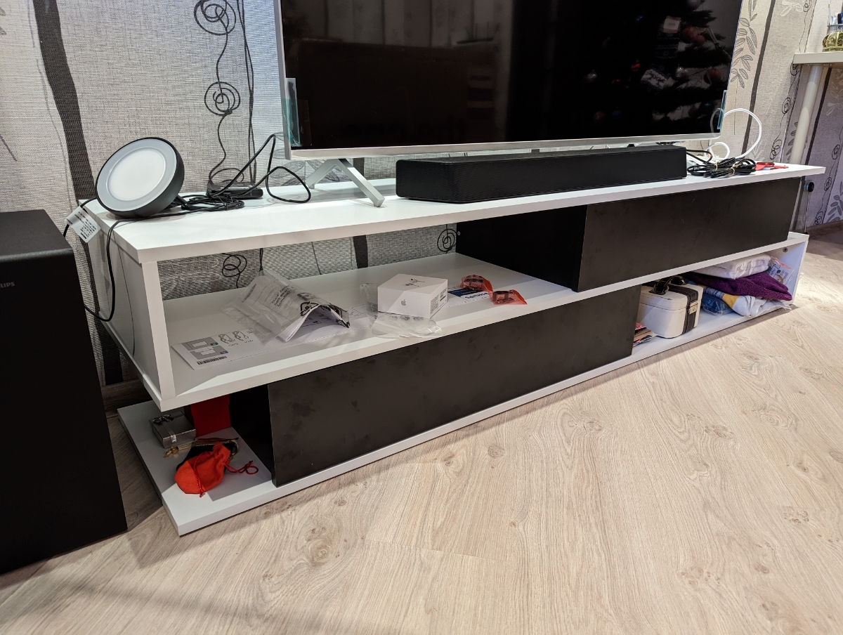 Два выдвижных ящика – это не просто место для хранения, это ваш личный секретарь порядка! Уберите пульты, диски, игры, зарядные устройства и прочие мелочи – все будет под рукой, но вне поля зрения. На открытых полках можно разместить более габаритную технику или предметы декора. Теперь ваш медиа-центр будет выглядеть безупречно!